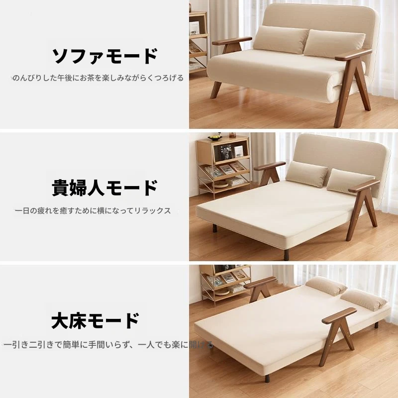 全実木製の2WAYソファベッド!コンパクトな小型住宅に最適なラウンジソファとチェアの組み合わせ。折りたたみ可能なパイン材使用、モダンでシンプルなデザインで、家でのリラックスタイムを格上げします!