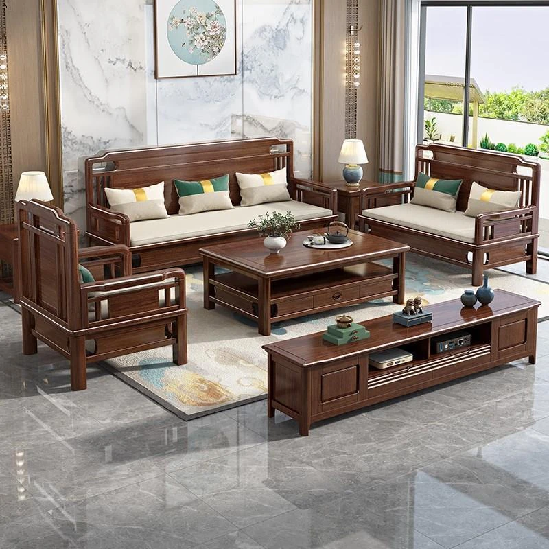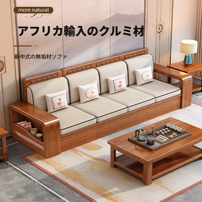 新中式デザインの実木ソファ、コンパクトな小型住宅向け経済的なフルセット!2024年新作、リビングルームを洗練された空間に演出します。