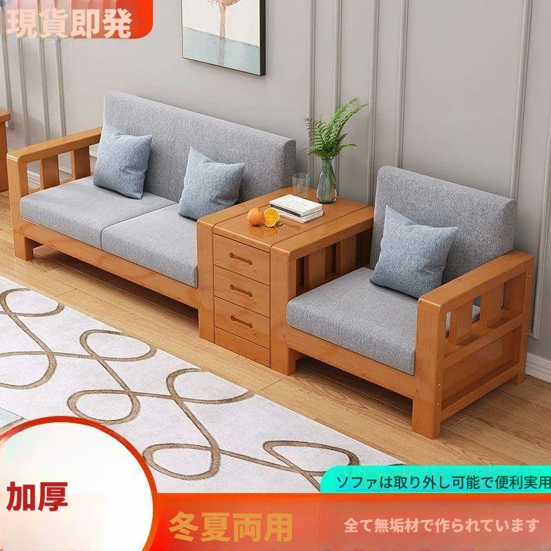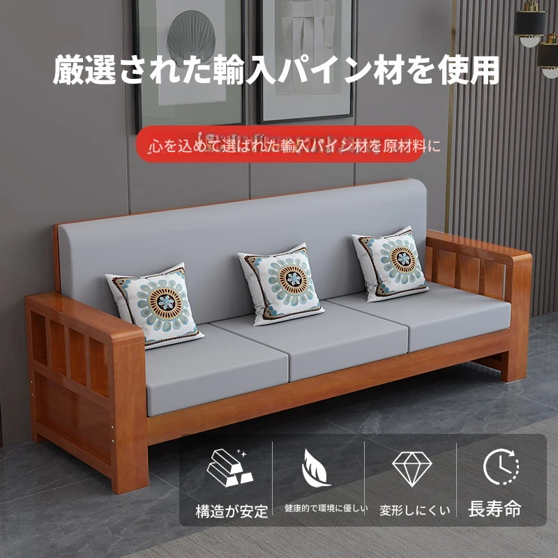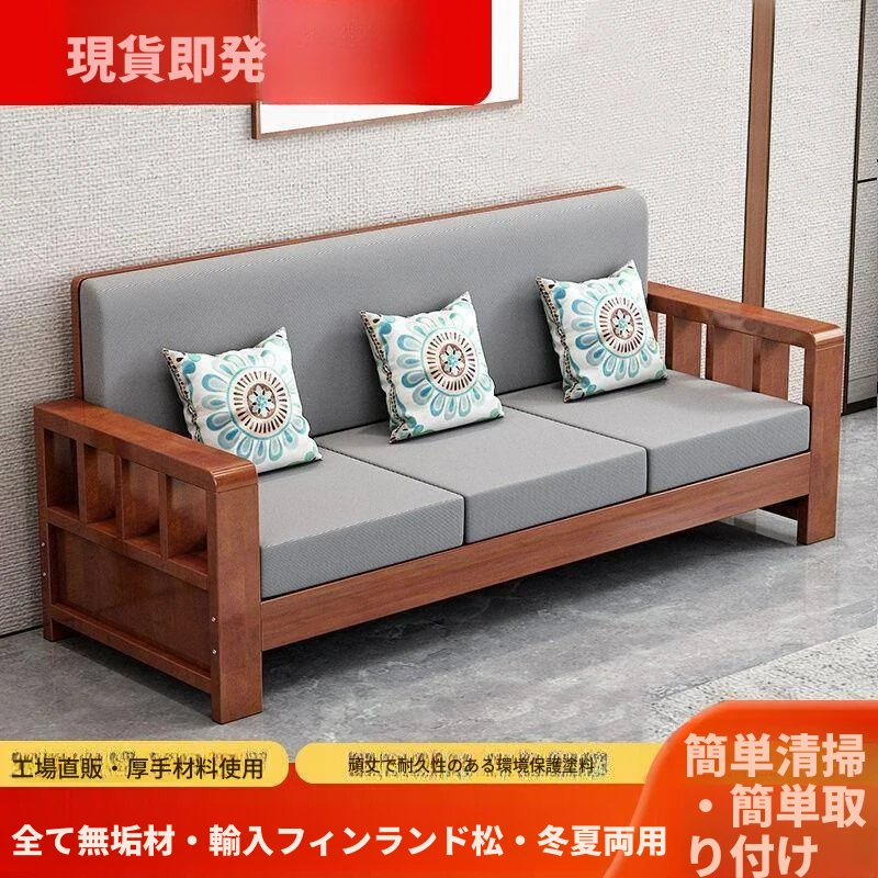 新中式デザインの無垢材ソファセット!小型リビングにぴったりの3人掛けシンプルで経済的な原木ソファ。快適な座り心地と洗練されたスタイルで、あなたの家を素敵に演出します!