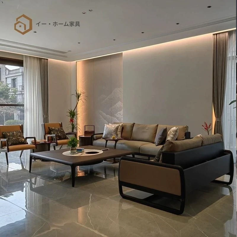 新中式スタイルの無垢材ソファ 2025年新作 北米産ブラックウォールナット使用 モダンでシンプルなイタリアンデザイン 高級ヴィラ向けソファ【贅沢な座り心地と洗練された美しさ】