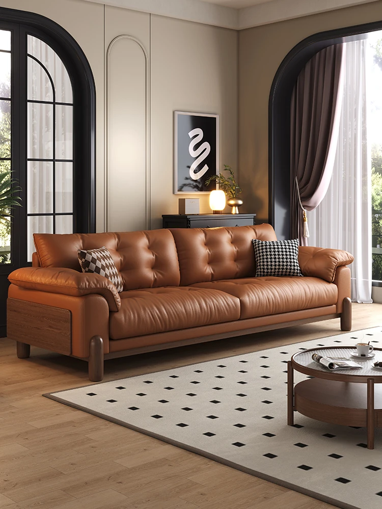 イタリアンスタイルの軽奢真皮ソファ、小型リビングに最適!ピアノキーのデザインで、3〜4人掛けのモダンな直排ソファ。優雅な空間を演出し、快適なひとときを提供します!