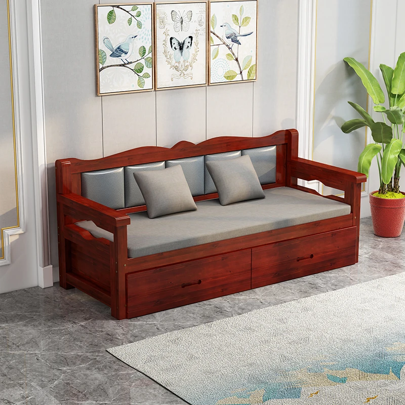 新中式デザインの実木製3人掛けソファセット - 引き出し付き、シンプルでモダンな小型住宅向けロングベンチ!快適さとスタイルを両立した空間を演出します。