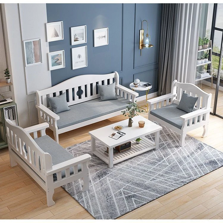 全実木のソファセット - 小型リビングに最適!新中式スタイルの三人掛け木製ソファ、経済的でシンプルなデザイン。快適な座り心地で、おしゃれな空間を演出します!