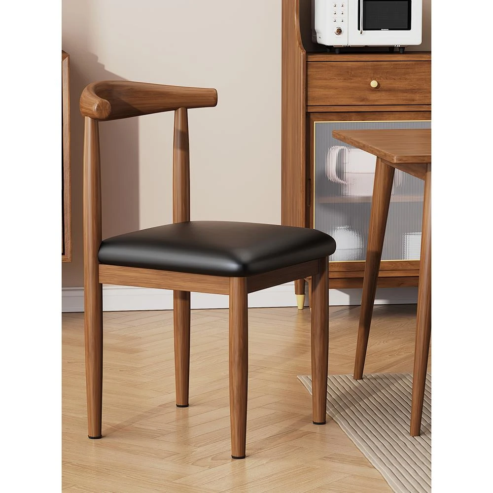 北欧風のシンプルなデザイン!実木風アイアン製のダイニングチェア。快適な背もたれで、デスクや学生寮にもぴったり。おしゃれで機能的な牛角チェアで、快適な空間を演出します。
