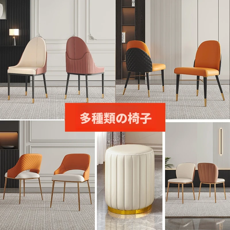 本革製ダイニングチェア|北欧スタイル・快適な背もたれ|モダンでシンプルなデザイン|高級感あふれるトップグレイン牛革使用|家庭用・レストラン・ホテルに最適なダイニングセット!
