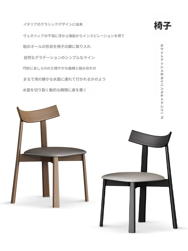 イタリアンスタイルの無垢材ダイニングチェア2023年新作!デザイナーによるシンプルで洗練されたデザイン、快適な背もたれ付き。ご家庭にぴったりのスタイリッシュな一脚です!