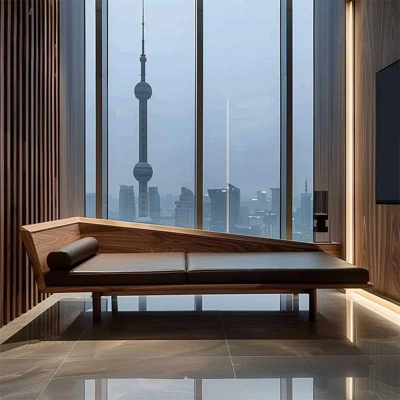 新中式禅の雰囲気を持つブラックウォールナット無垢材製の貴妃椅子。オフィスやホテル、民宿にぴったりのリラックスソファチェア。心安らぐ安らぎの空間を演出します。