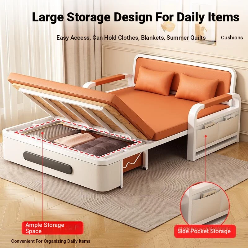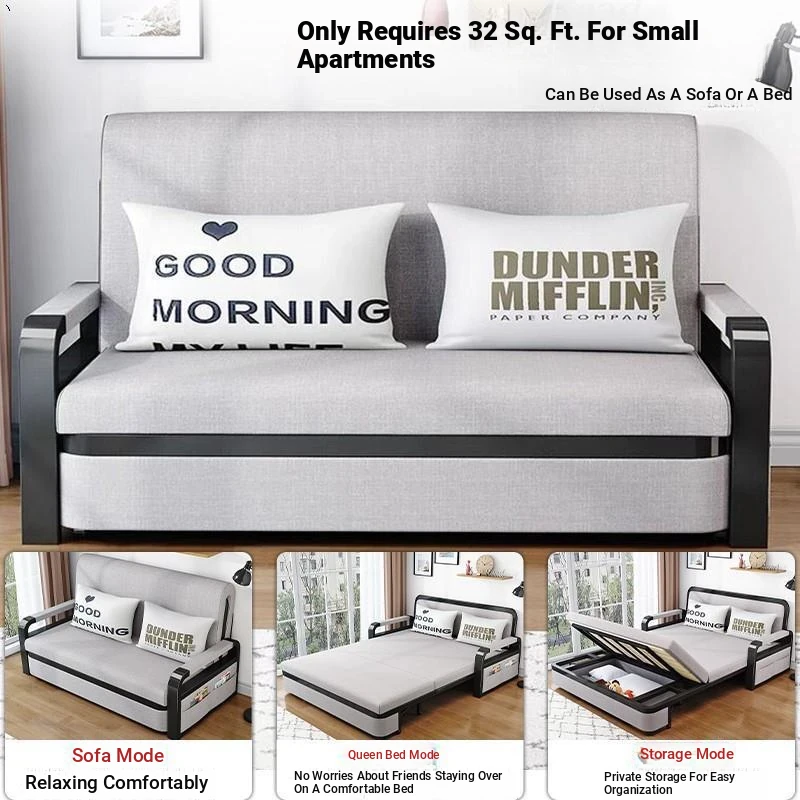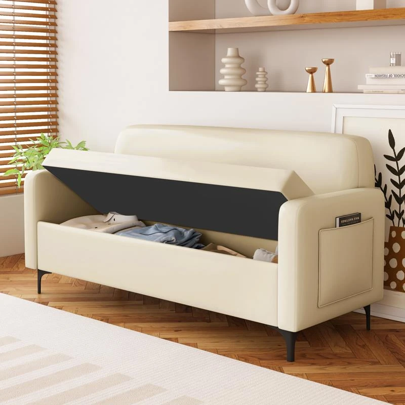 Modern Minimalist Solid Wood Sofa for Small Spaces - Stylish Two-Seater with Storage Drawers, Perfect for Living Rooms and Bedrooms in Compact Homes.