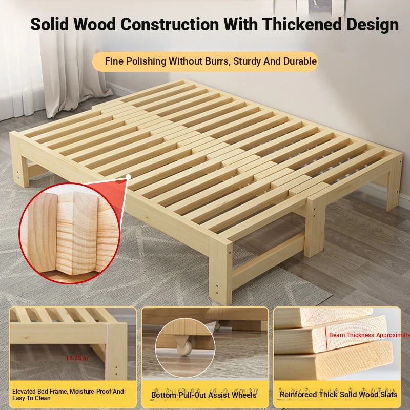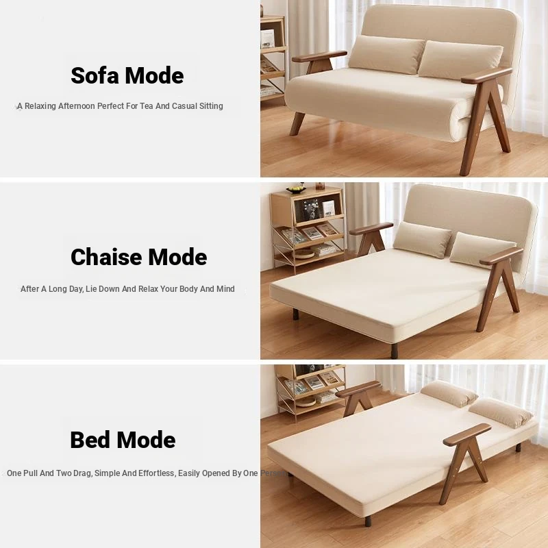 Modern Minimalist Solid Wood Sofa Bed Combo for Small Spaces - Foldable Pine Chair for Lazy Living Room Use, Perfect for Home Comfort and Style