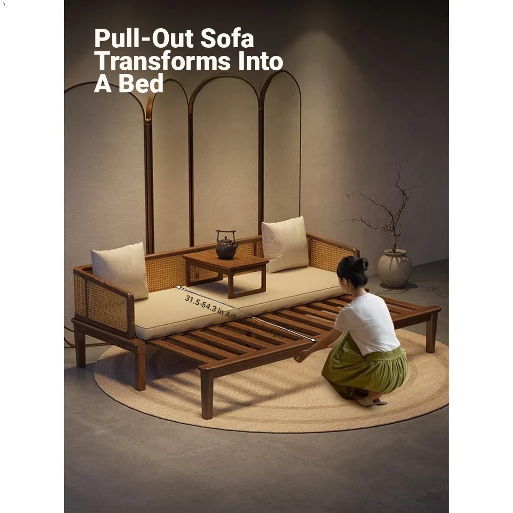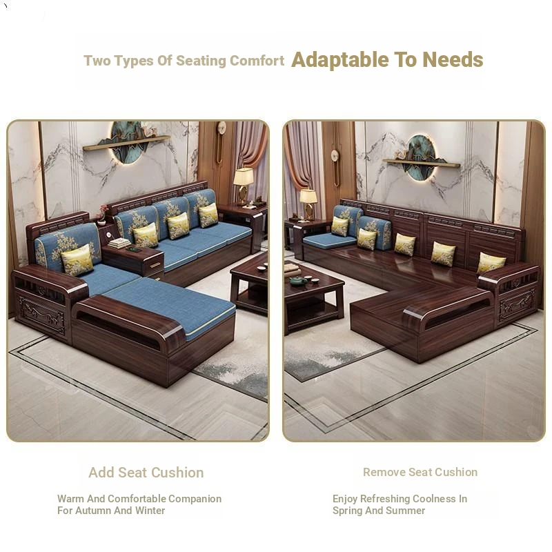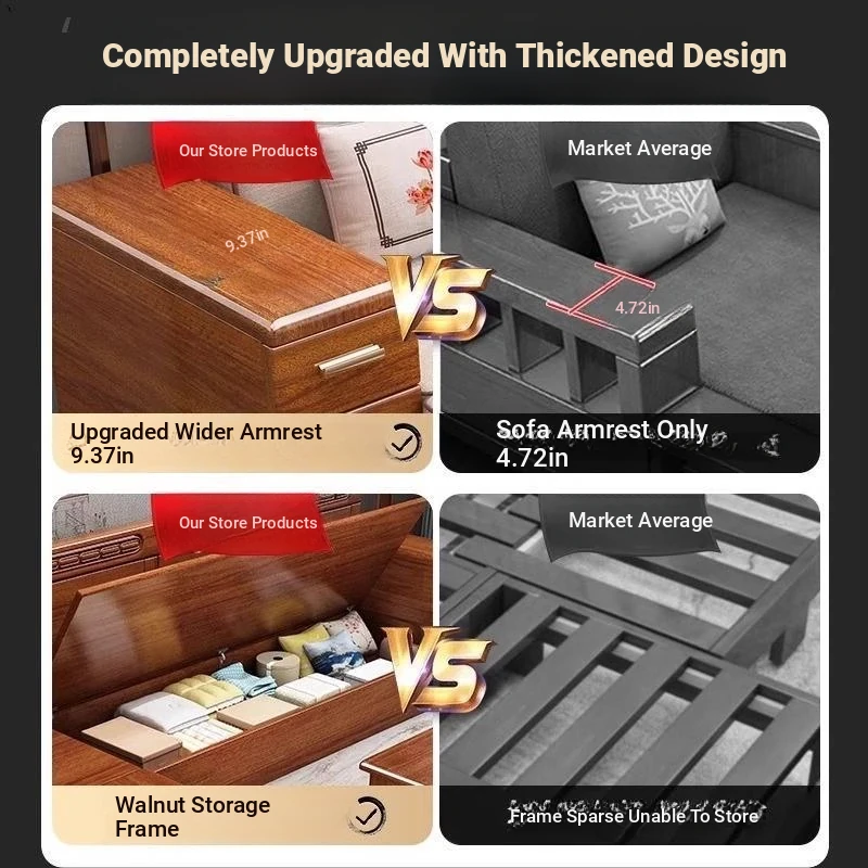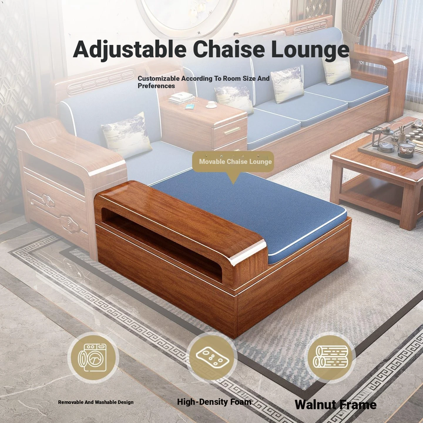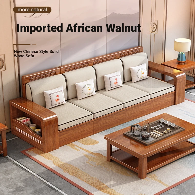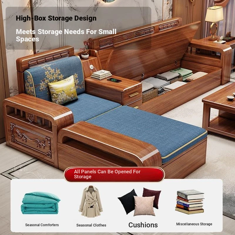 Modern Chinese Walnut Solid Wood Sofa - All Solid Wood Living Room Furniture for Small Spaces, Dual-Use for Winter and Summer, High-Storage Sofa with Ample Storage Solutions