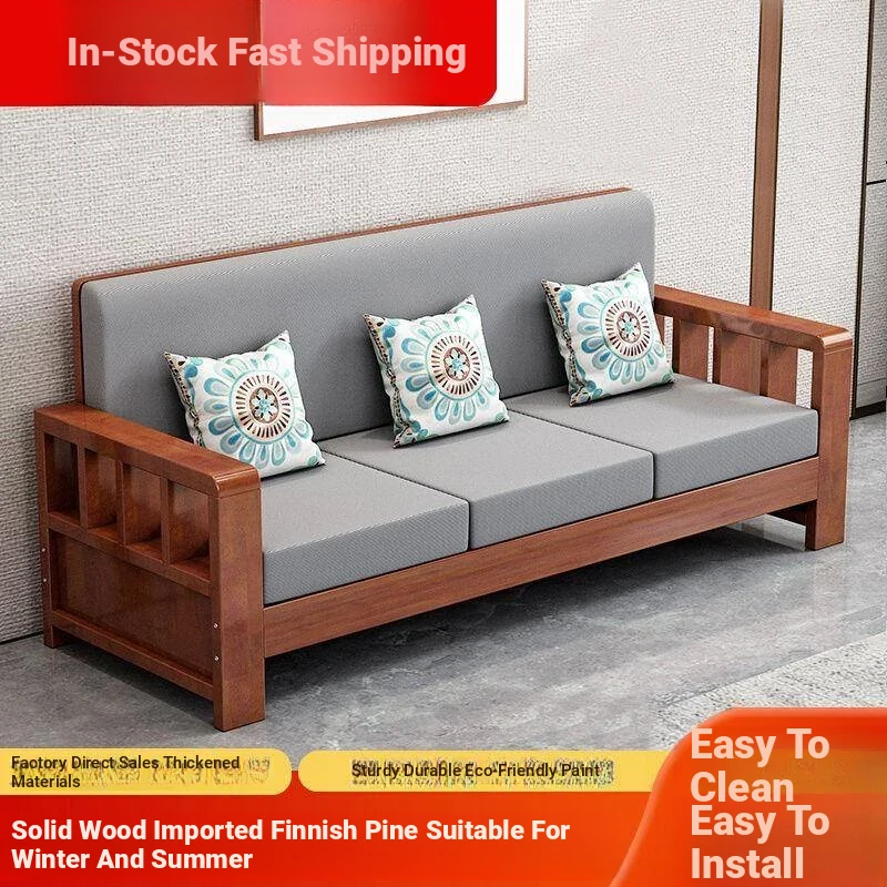Modern Minimalist Solid Wood Sofa Set for Small Living Rooms - Stylish 3-Seater Couch in New Chinese Style, Perfect for Cozy Spaces, Economical and Elegant Design