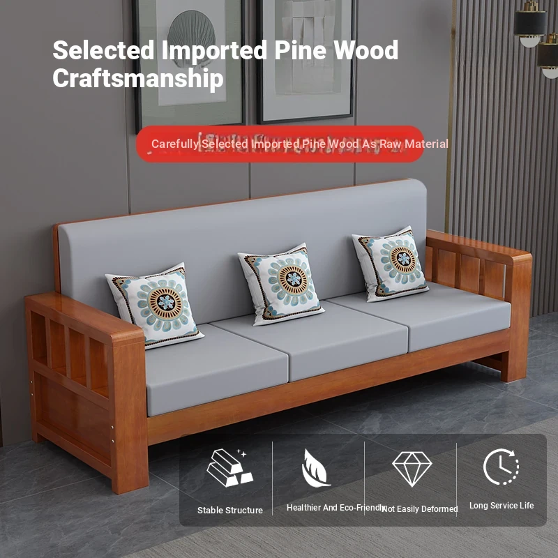 Modern Chinese Solid Wood Sofa Set - All Solid Wood, Simple and Stylish for Small Rural Living Rooms, Versatile Furniture for Year-Round Comfort.