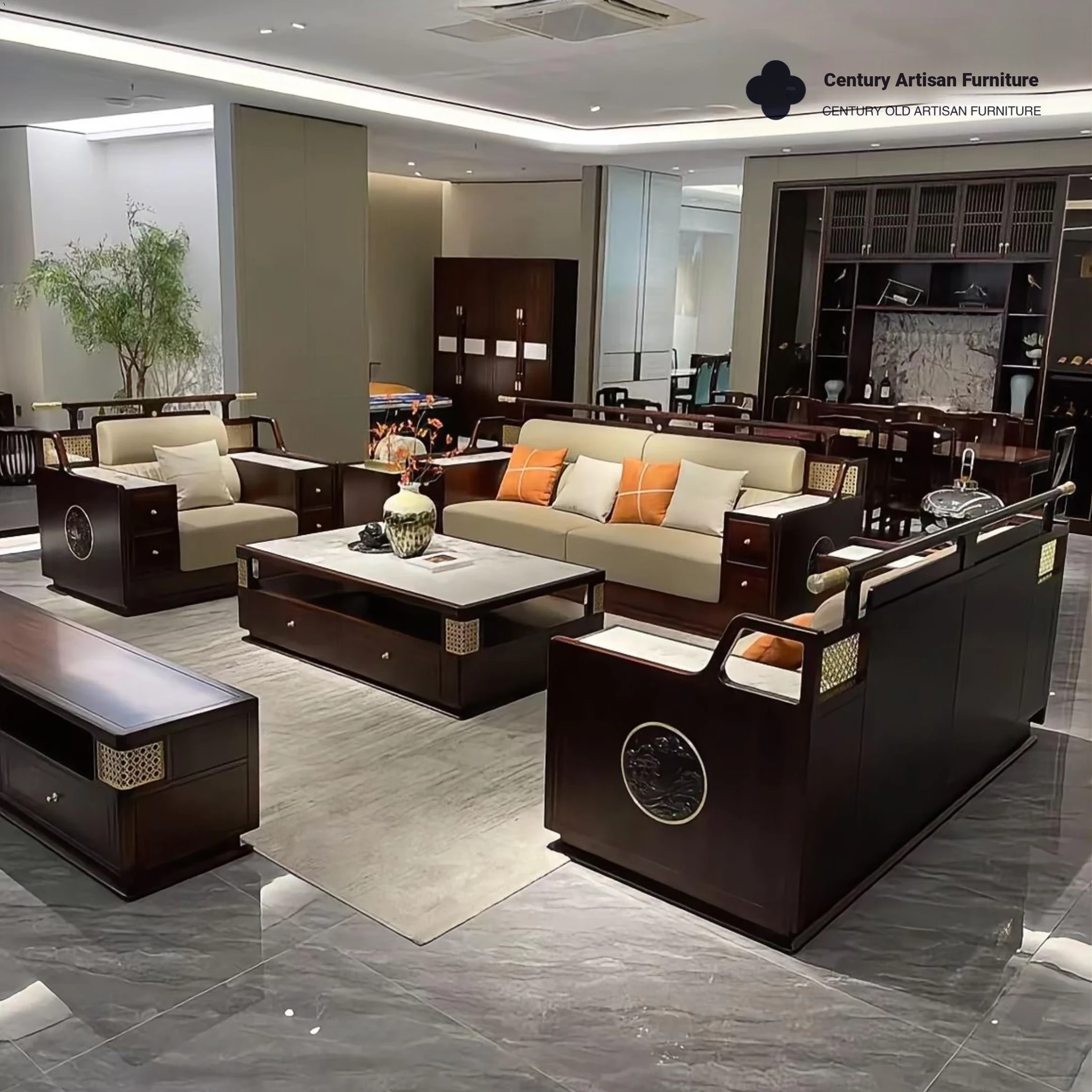 2024 New Arrival: Affordable Solid Wood Sofa Set for Small Spaces - Elegant New Chinese Style Living Room Combination