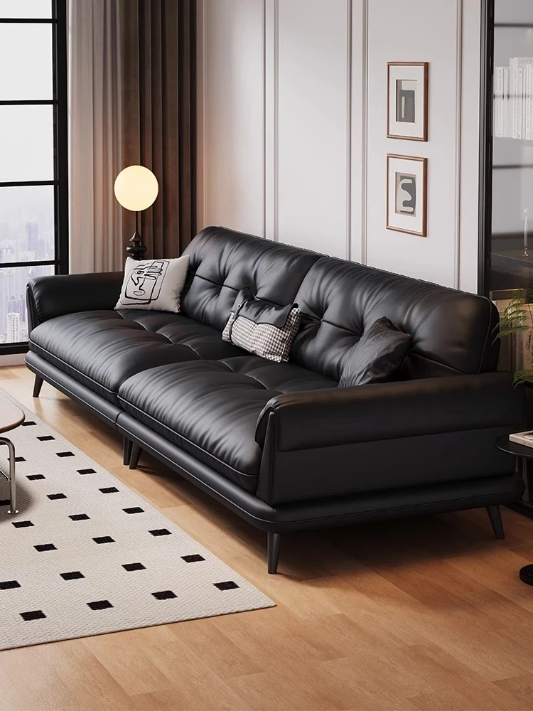 Italian Minimalist Genuine Leather Sofa - French Vintage Style for Modern Small Living Rooms, Featuring Direct-Line Design in Top Grain Cowhide