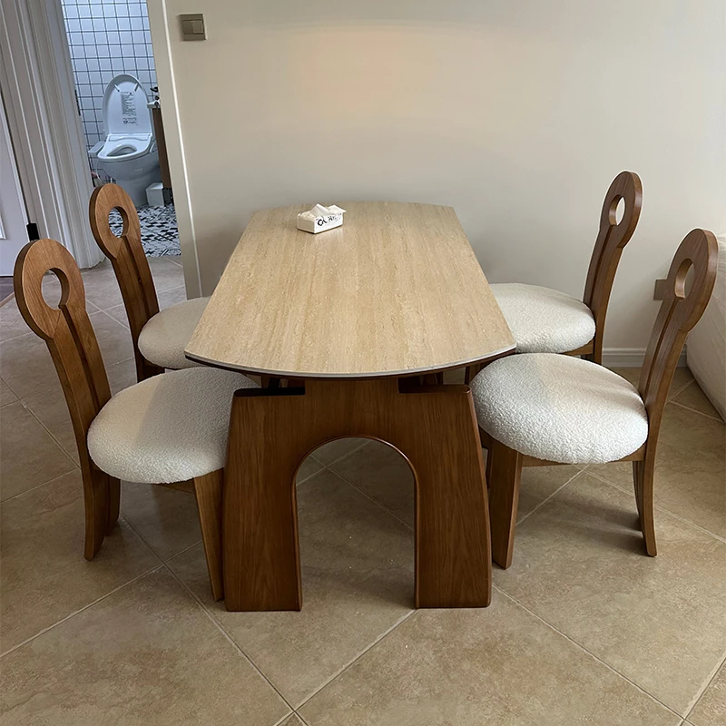 French Vintage Style Oval Dining Table - Natural Lime Marble with Solid Wood Base, Perfect for Small Spaces - Elegant and Durable Home Dining Solution