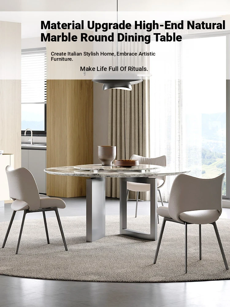 Tinosha Premium Natural Marble Round Dining Table with Lazy Susan - Ideal for Spacious Villas and High-End Restaurants