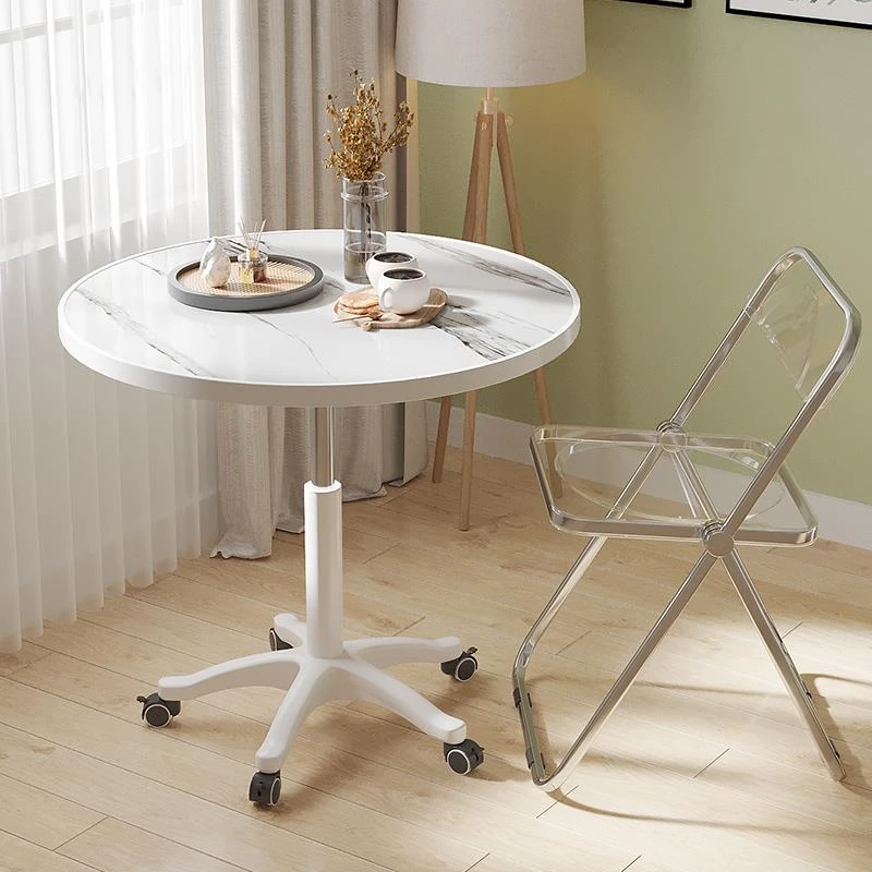 Versatile Adjustable Small Round Balcony Table with Wheels - Perfect for Home Use, Meetings, or Relaxing by the Sofa or Bed. Ideal for Compact Spaces!