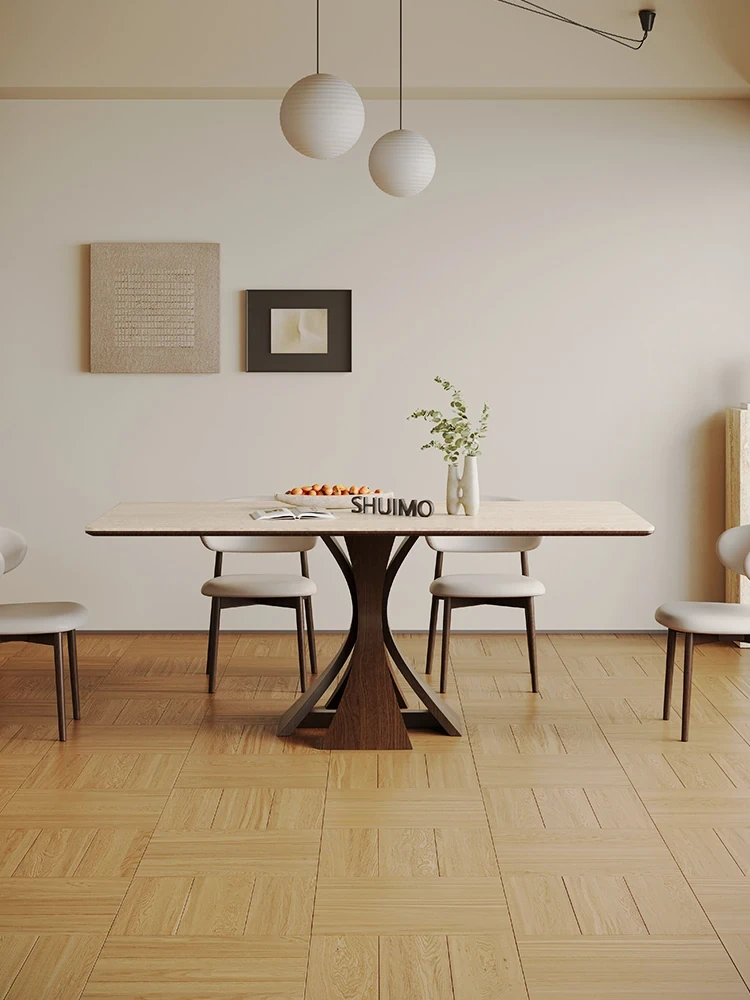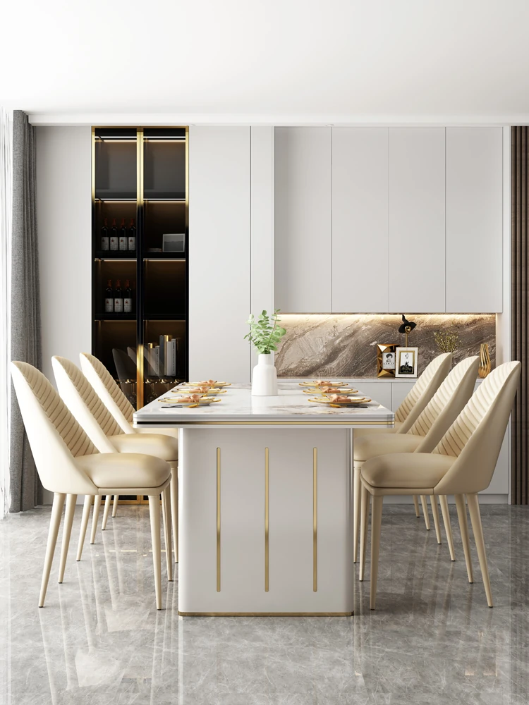 Elegant Cream White Slate Dining Table Set - Modern Minimalist Design for Small Spaces, Perfect for Chic Dining Rooms and Home Use
