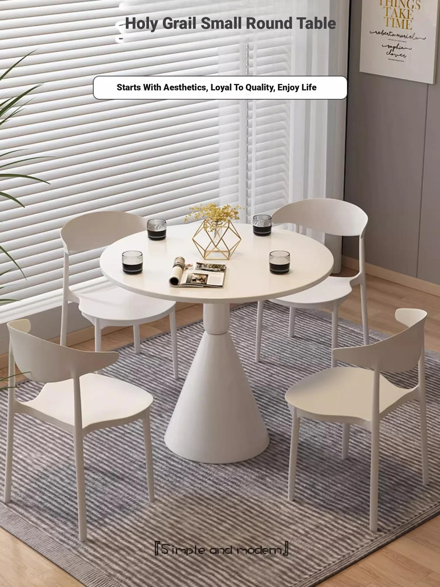 Modern Minimalist Cream-Colored Holy Grail Round Table Set - Perfect for Small Apartments and Balconies, Ideal Dining Table and Chair Combo for Cozy Living Spaces