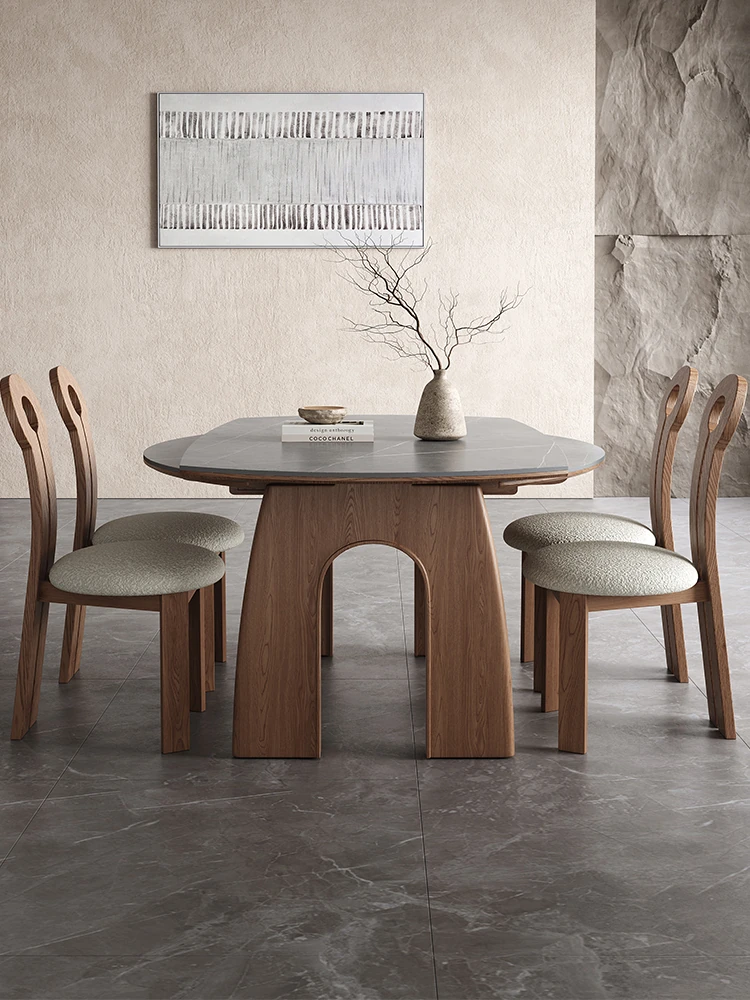 Modern Rustic Solid Ash Wood Dining Table with Expandable Round and Square Design - Versatile and Stylish for Home Use, Perfect for Any Dining Space