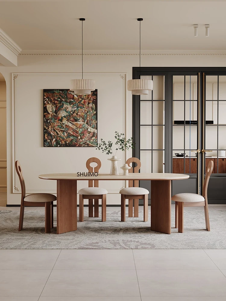 French Vintage Solid Wood Dining Table Set - Modern Minimalist Rectangular Table & Chairs for Home - Designer High-End Dining Experience