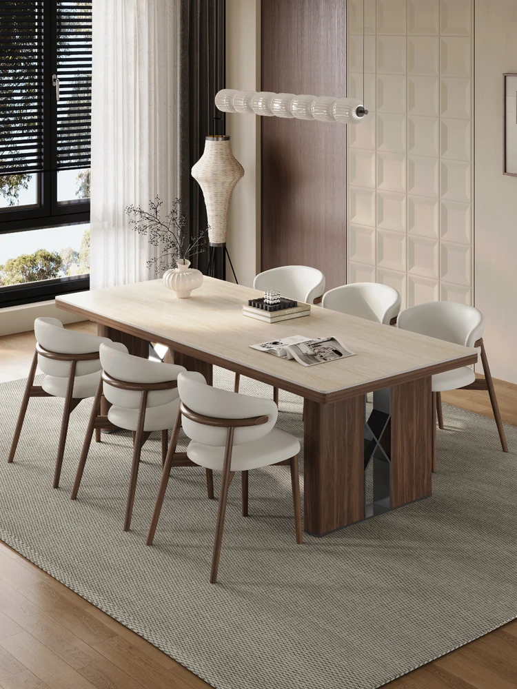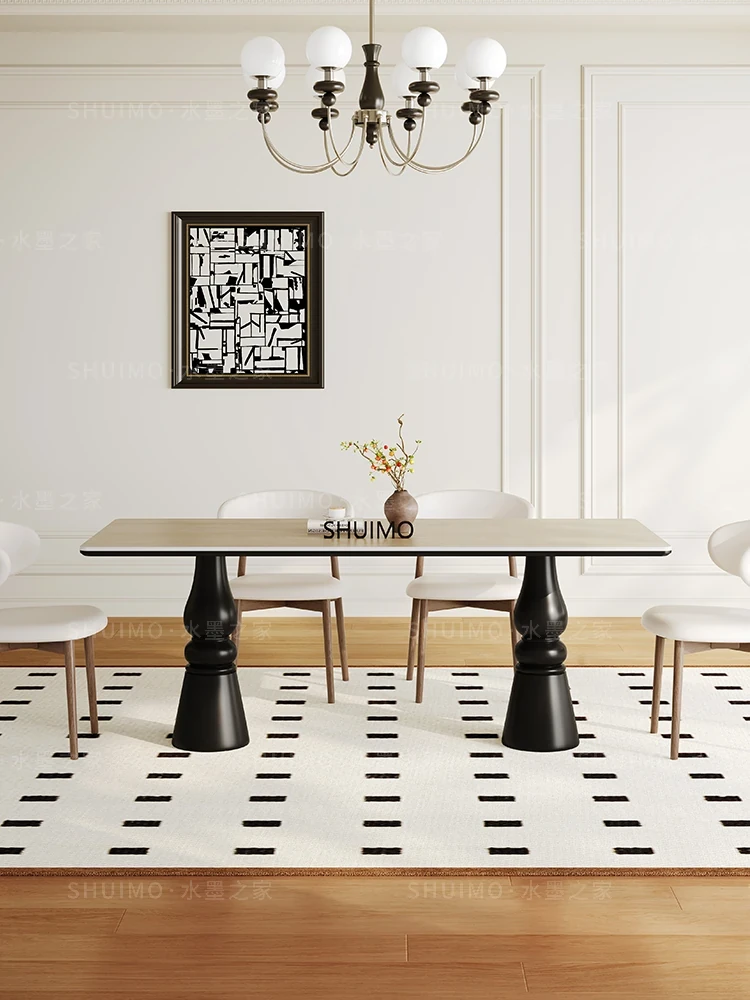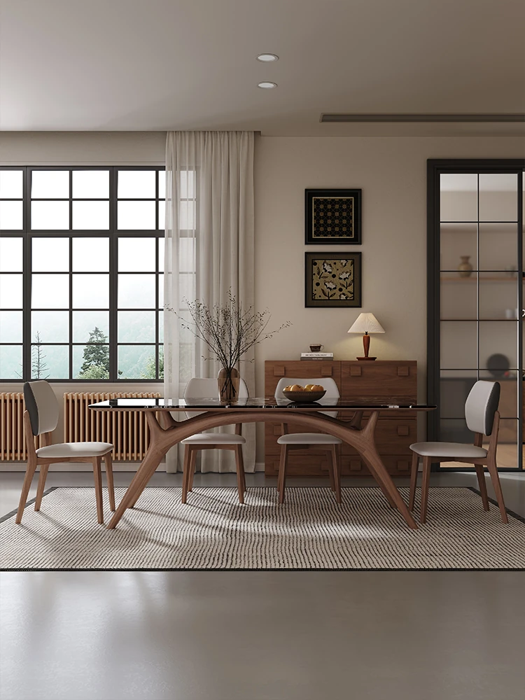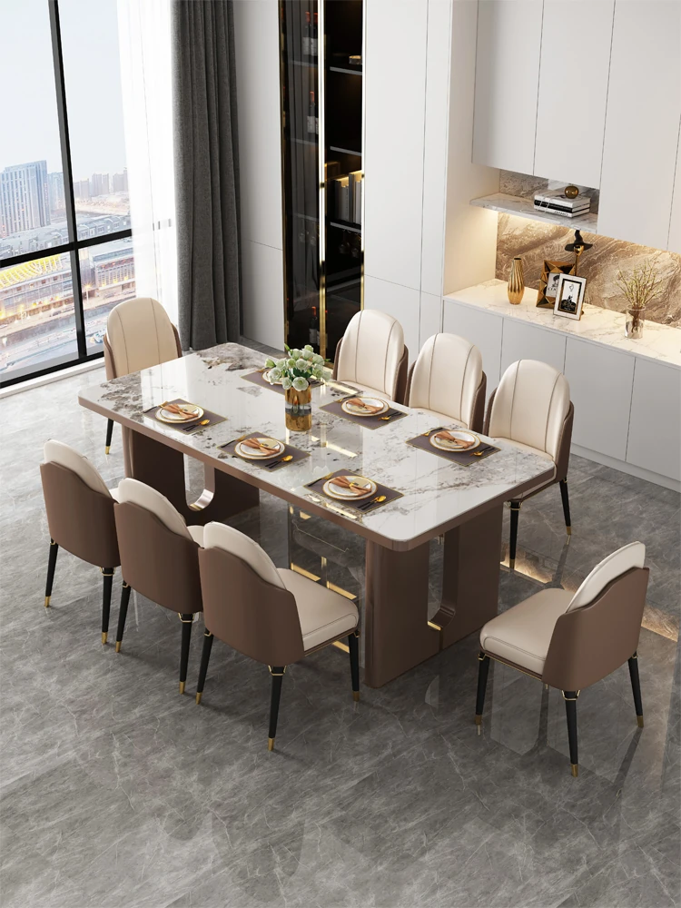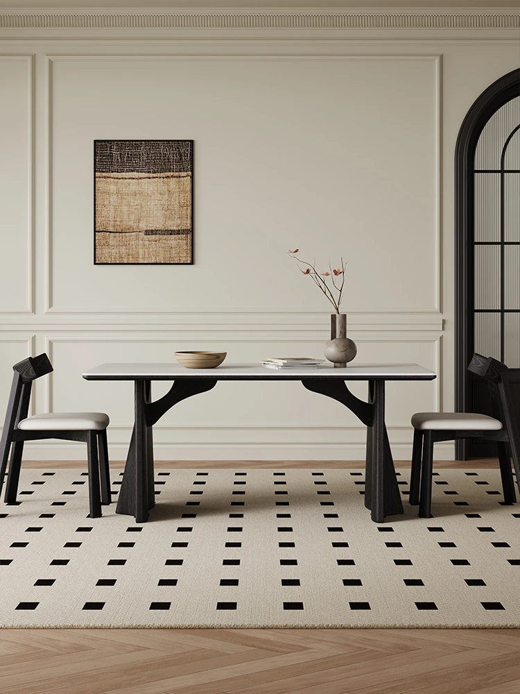 Modern Minimalist Light Luxury Imported Rock Plate Dining Table and Chair Set - Rectangular Creative Dining Table for Small Spaces
