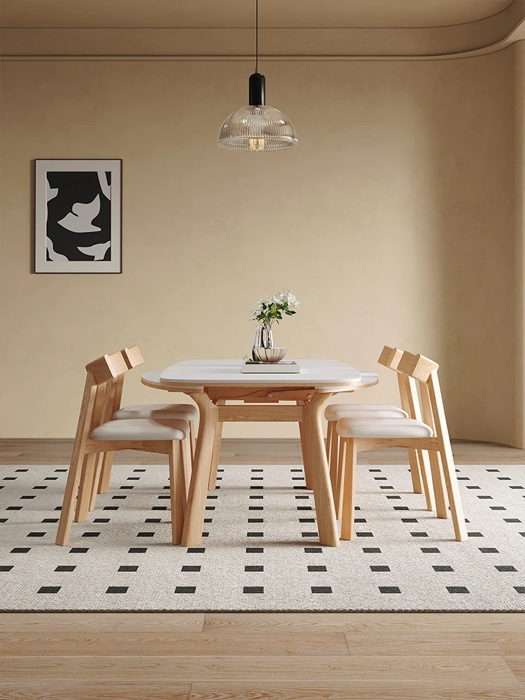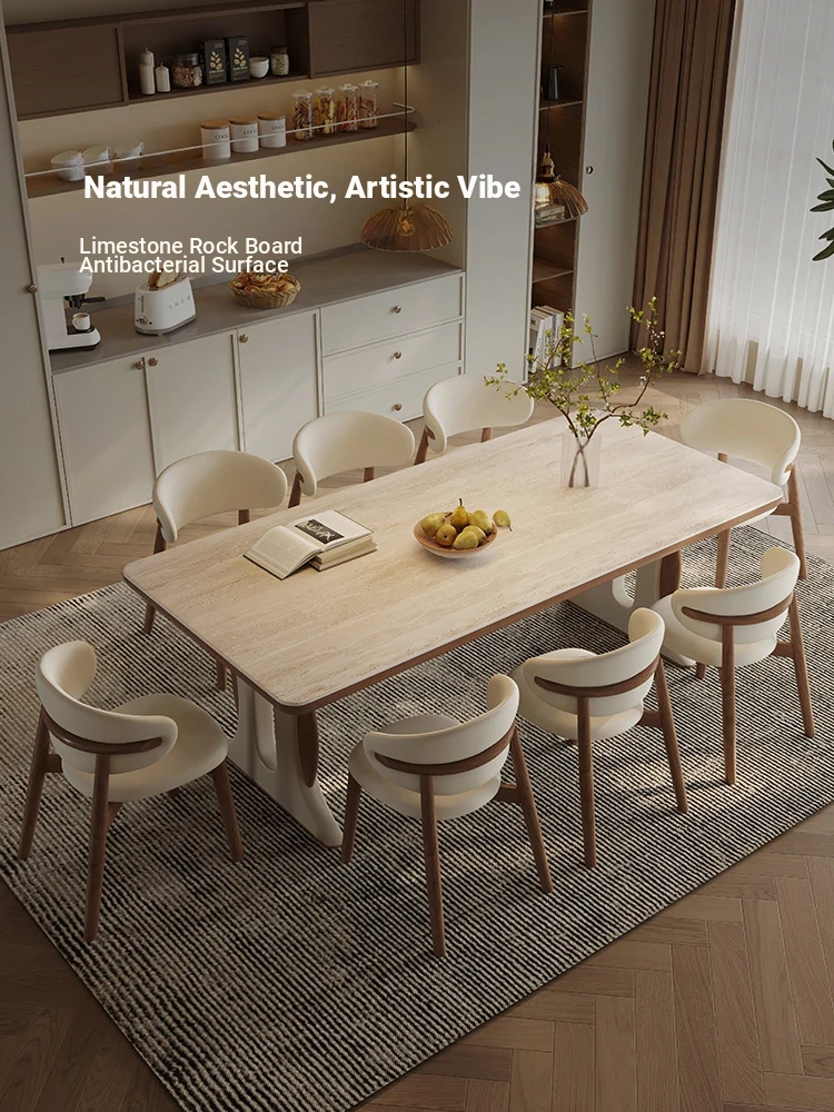 Wabi-Sabi Style Solid Wood Dining Table with Rock Panel - Modern Minimalist Design for Small Spaces, Perfect for Living Room & Home Use - New 2025 Collection