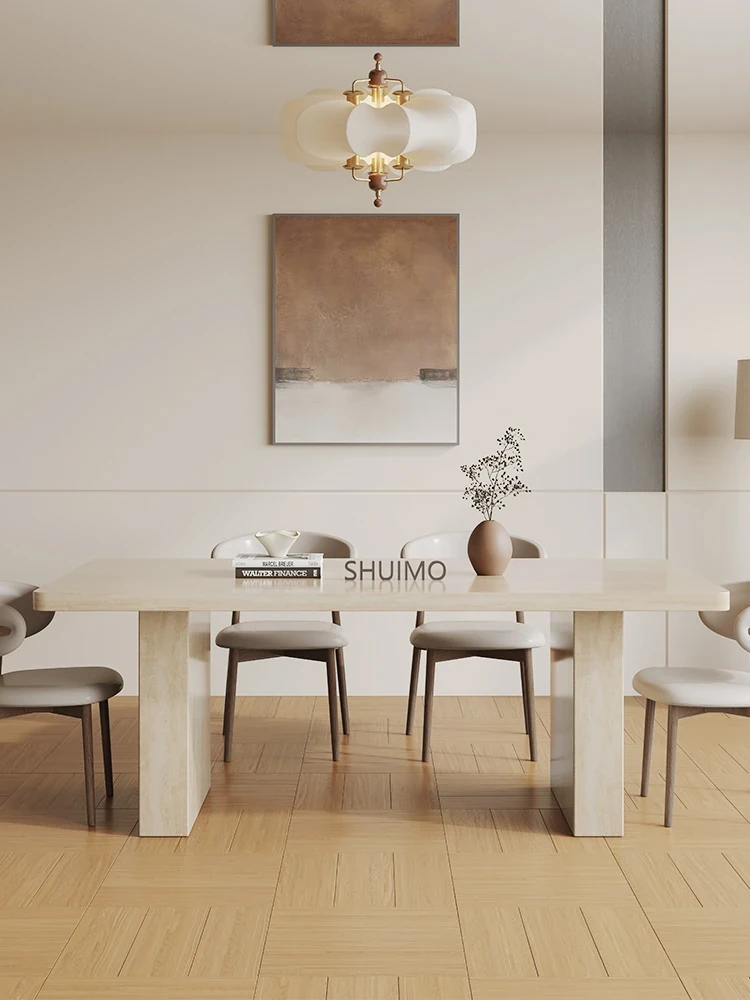 Minimalist White Cream Dining Table Set with Designer Touch - Elegant Solid Ash Wood and Rock Slab Chairs, Inspired by Ins Style and Perfect for Modern Homes.