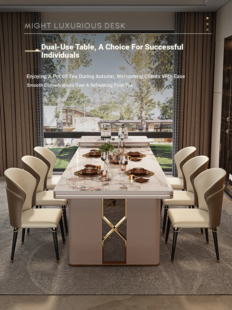 Elegant Multifunctional Rock Plate Island Tea Table Set - Modern Light Luxury Expandable Dining Table and Chair Combo for Small Spaces, Perfect for Home Tea Brewing