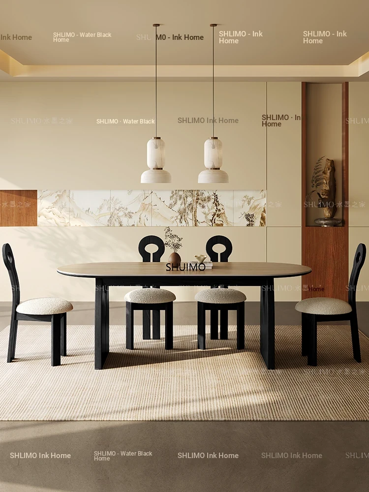 Italian Luxury Designer High-End Ceramic Dining Table Set - Modern Minimalist Rectangular Table and Chairs for Small Spaces