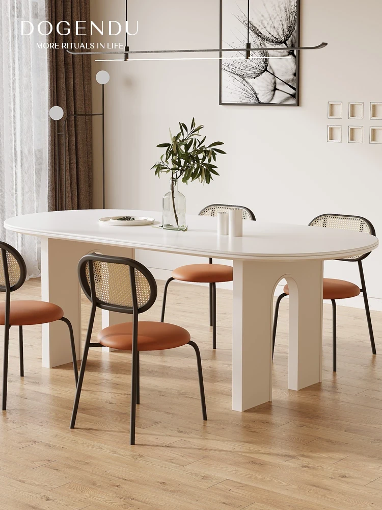 Delifeng French Style Cream Oval Rectangular Dining Table - Elegant Lightweight Design for Small Homes, Perfect for Living Room and Dining Area