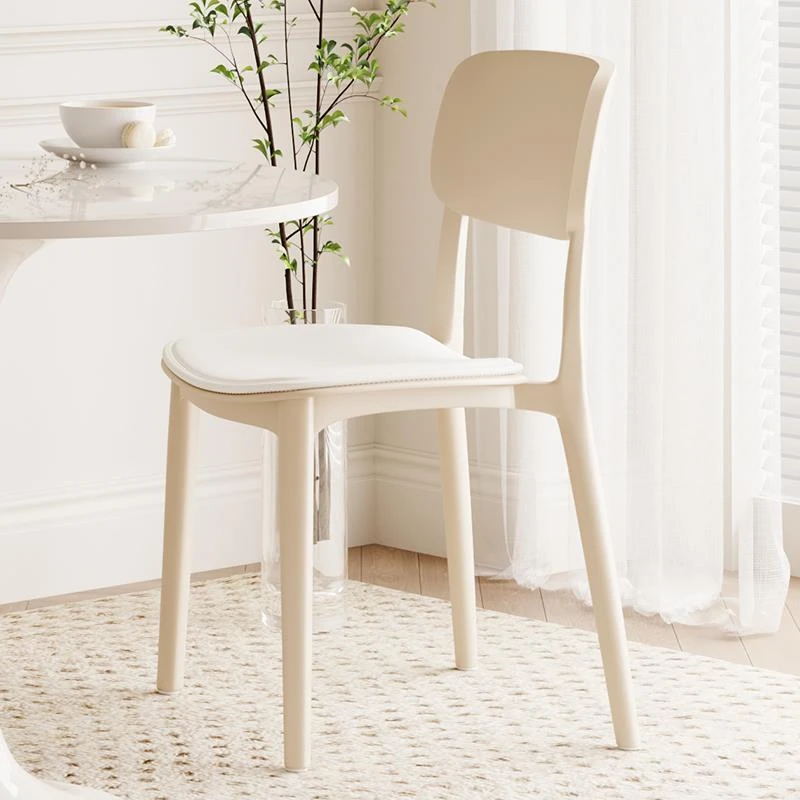 Creamy Style Dining Stool - Elegant Plastic Chair for Home Living Room, Premium Dining Table and Office Seating, Minimalist Design with Comfortable Backrest for Enjoyable Meals