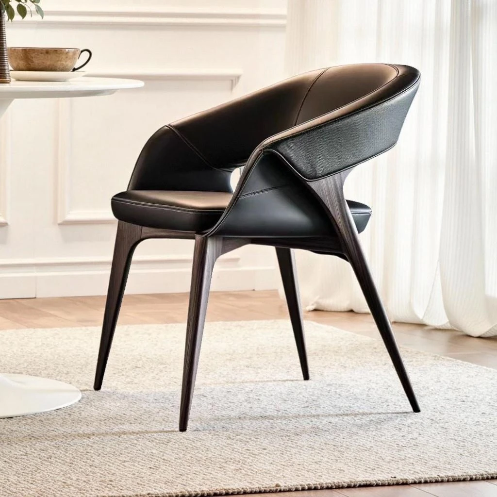 Luxury Genuine Leather Dining Chair - Modern Nordic Design with Comfortable Backrest for Home & Hotel Use, Premium Top-Grain Cowhide, Minimalist Style for Elegant Dining Experience