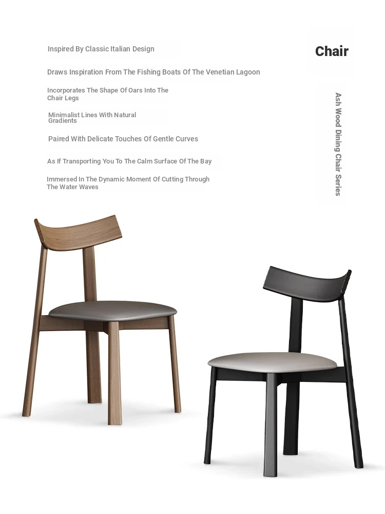 Italian Solid Wood Dining Chair - 2023 Designer Collection, Minimalist Style with Ergonomic Backrest for Home Use