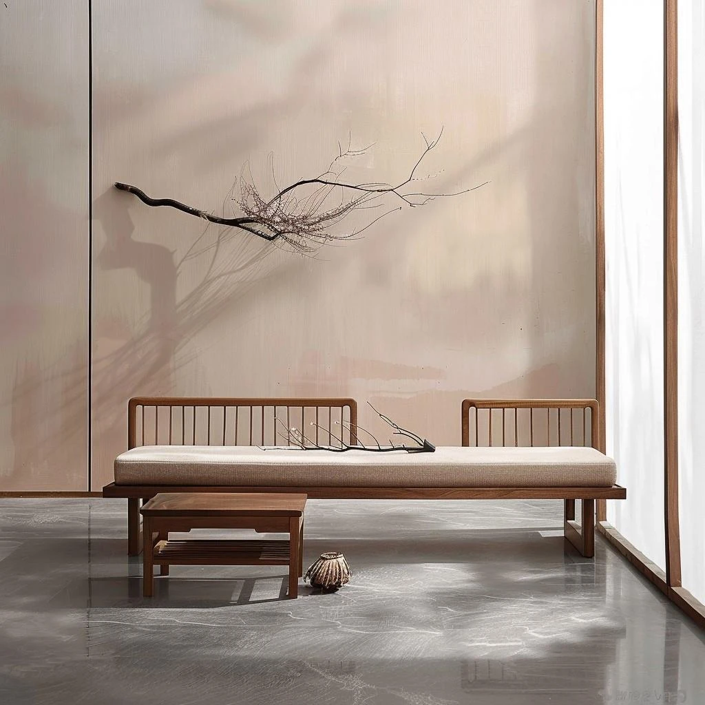 Elegant New Chinese Style Solid Wood Black Walnut and Ash Beauty Couch - Perfect for Hotels, B&Bs, Offices, and Lounges.