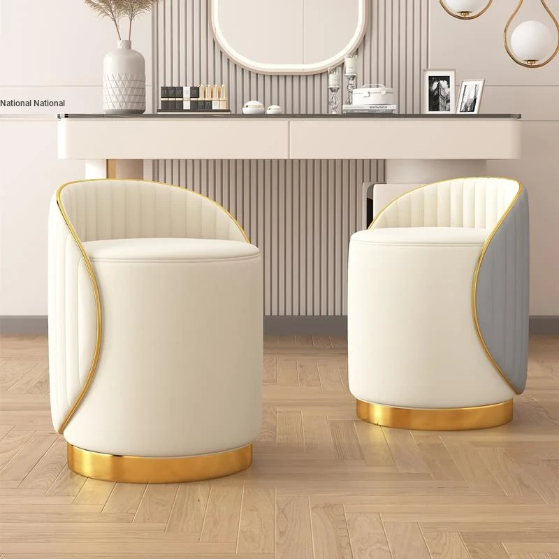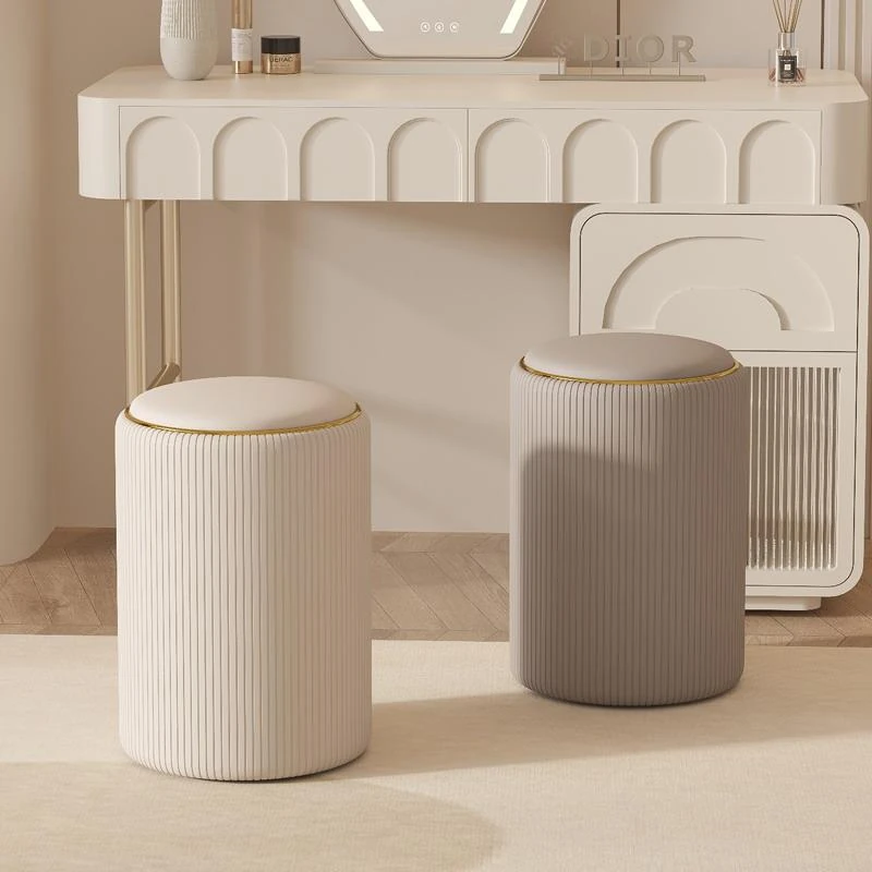 Modern Luxury Makeup Stool for Girls - Elegant Vanity Chair for Bedroom, Simple Design, Trendy Round Stool Perfect for Nail Art and Influencer Style