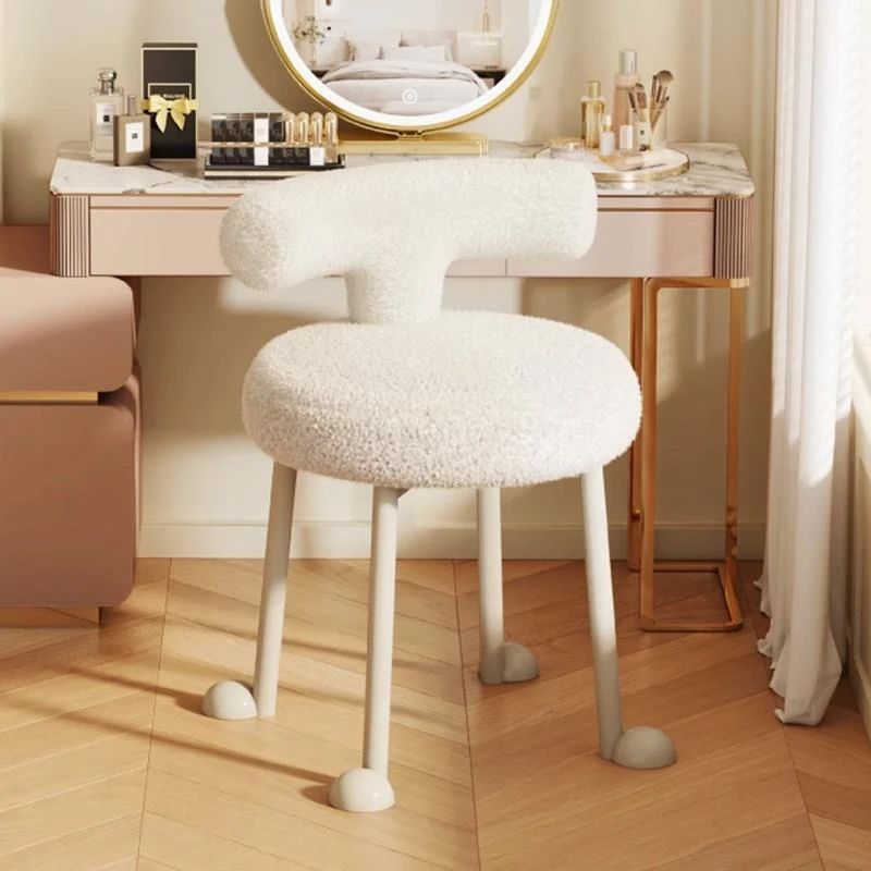 Elegant Makeup Stool for Women - Luxurious Creamy Aesthetic Nail Chair for Home Use, Perfect for Bedroom Vanity and Dressing Tables with Comfortable Backrest