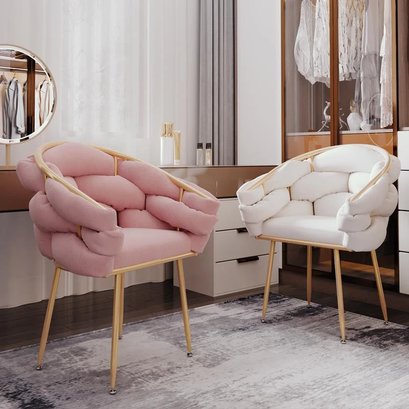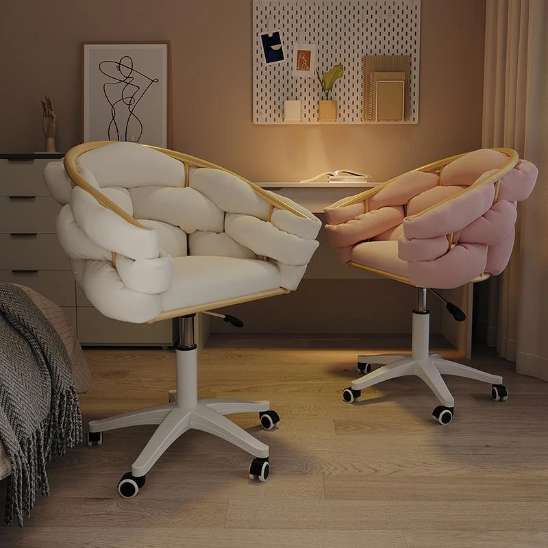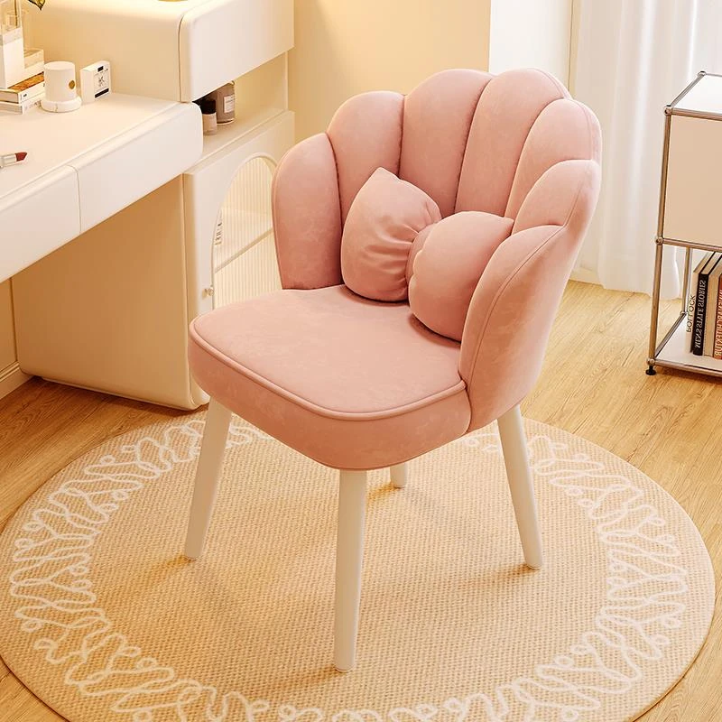 Trendy Makeup Chair for Home - Stylish Vanity Stool with Backrest for Girls' Bedrooms, Minimalist Luxury Design, Perfect for Nail Art, Petal-Shaped Comfort