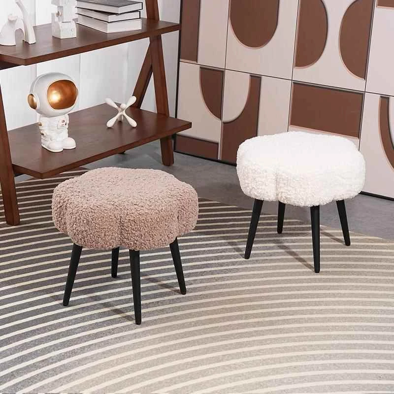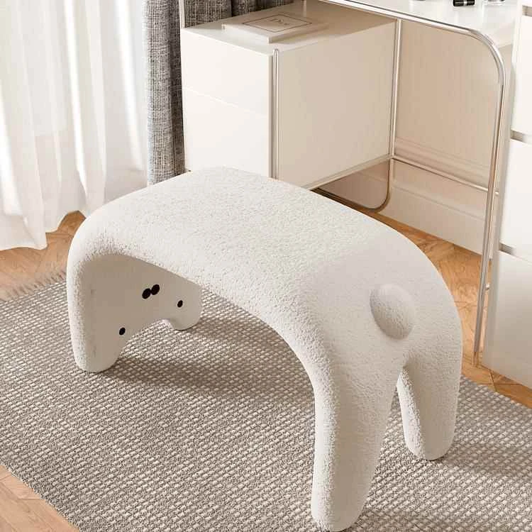 Cat-Themed Plush Makeup Stool - Trendy Lambswool Vanity Bench for Entryway and Living Room - Perfect for Pet Lovers and Stylish Decor