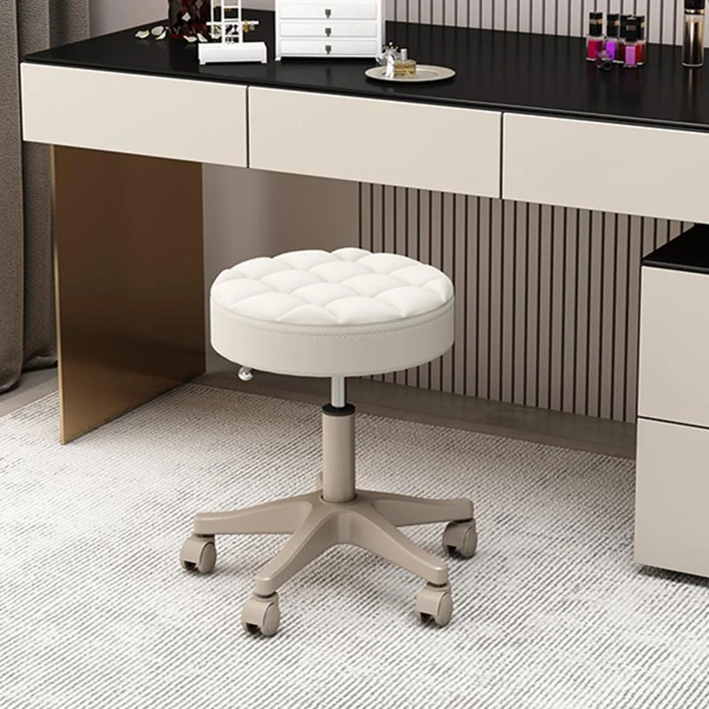 Stylish Adjustable Makeup Stool with Wheels - Trendy Bedroom Vanity Seat for Beauty and Nail Art - Perfect for Home Use, Round Design for Comfort