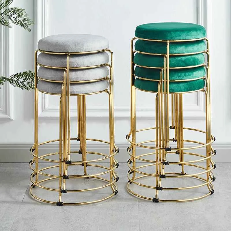 Nordic Style Luxury Home Stool - Lightweight Steel Frame, Simple Design, Thickened Fabric Upholstery, High Round Stool, Fashionable Gold Finish for Dining Tables - Perfect for Home and Commercial Use