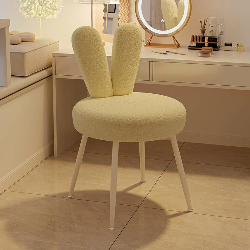 Creamy Makeup Vanity Stool with Backrest for Girls' Bedrooms - Stylish, High-End, Influencer-Approved Rabbit Chair for Makeup and Nail Art. Perfect for Elevating Your Beauty Space!