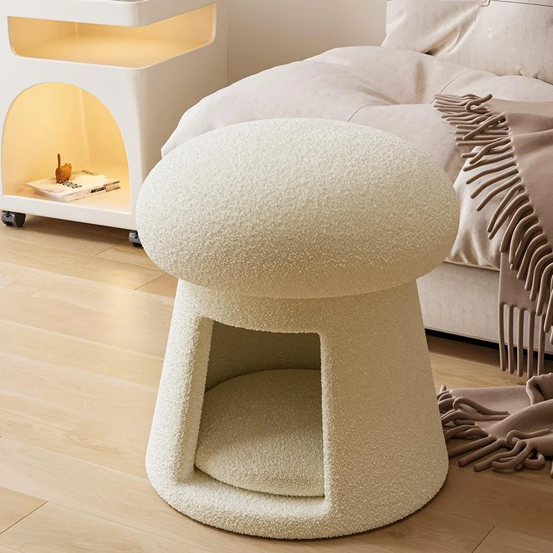 Creamy Luxury Makeup Chair - Stylish Vanity Stool for Master Bedroom Dressing Room, Trendy Mushroom Round Stool for Girls' Bedrooms - Perfect Blend of Elegance and Comfort!