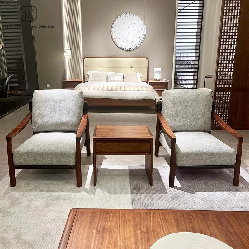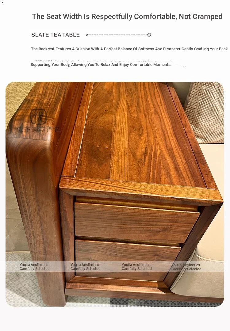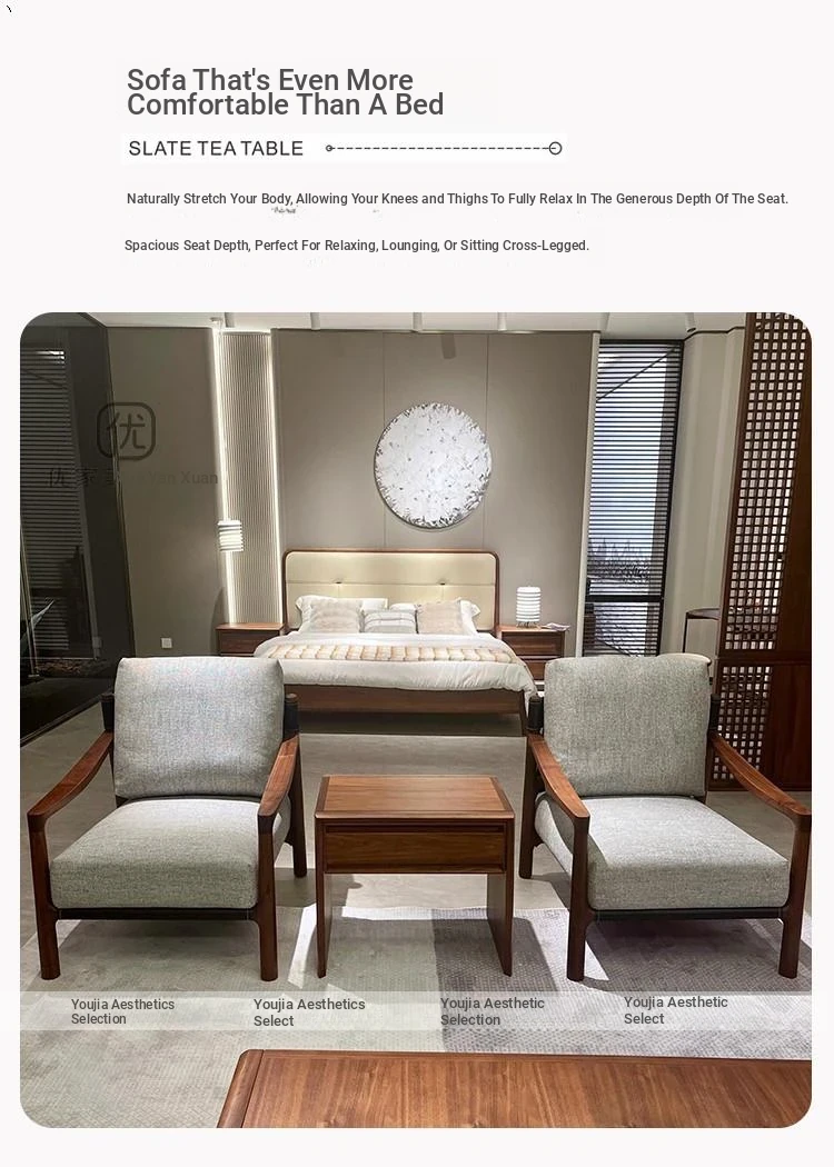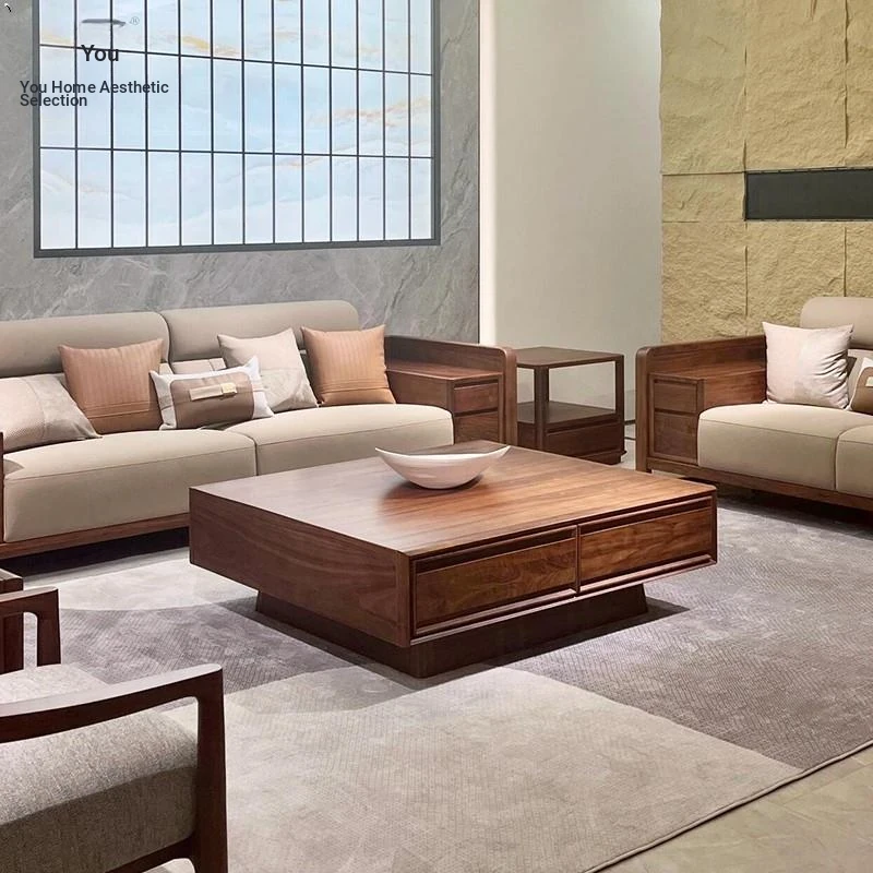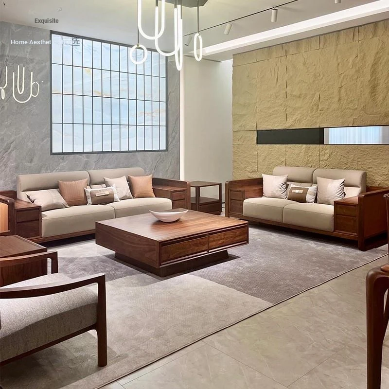 2025 New Chinese Style Solid Wood Sofa - Modern Minimalist High-End Villa Sofa in North American Black Walnut