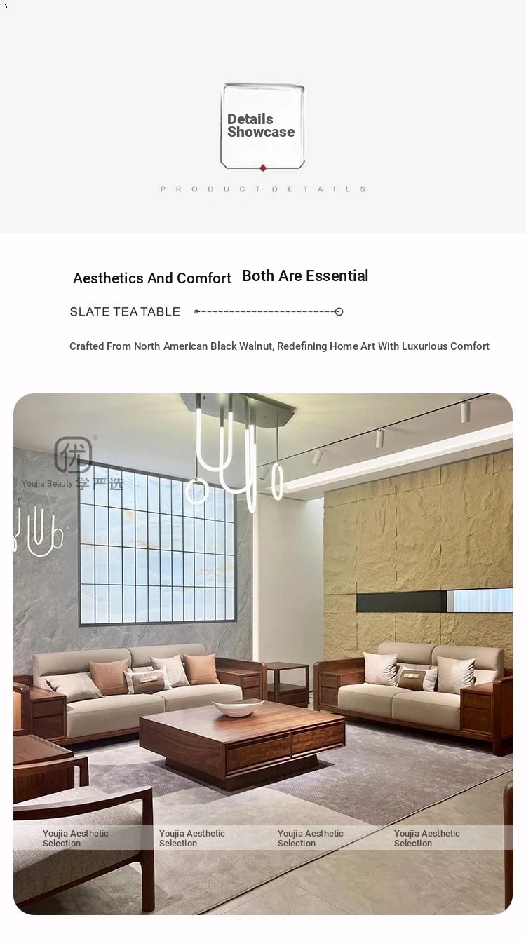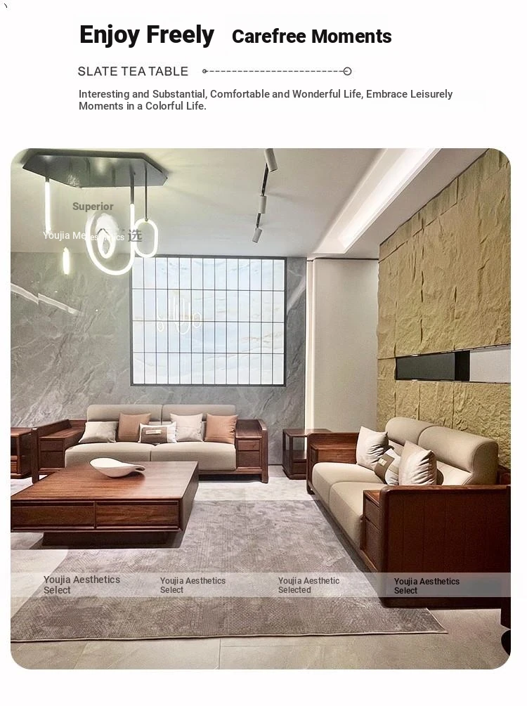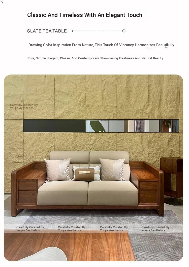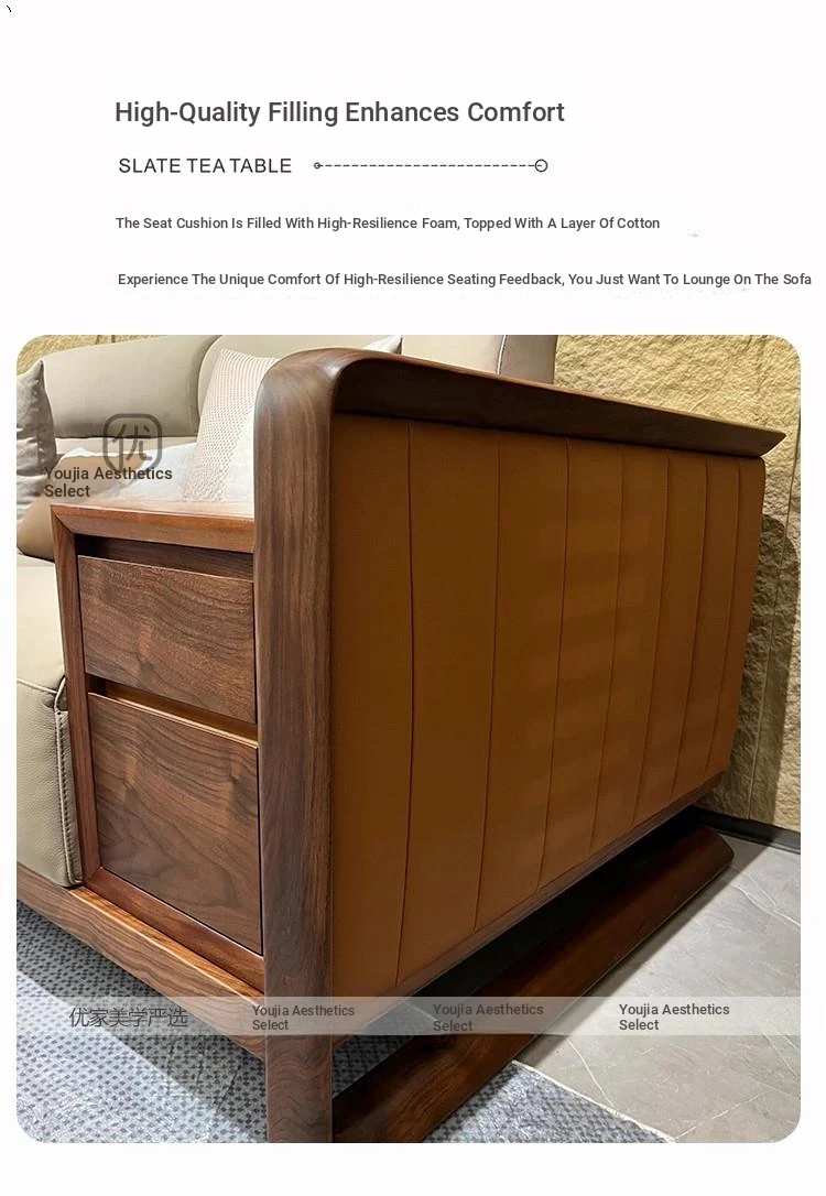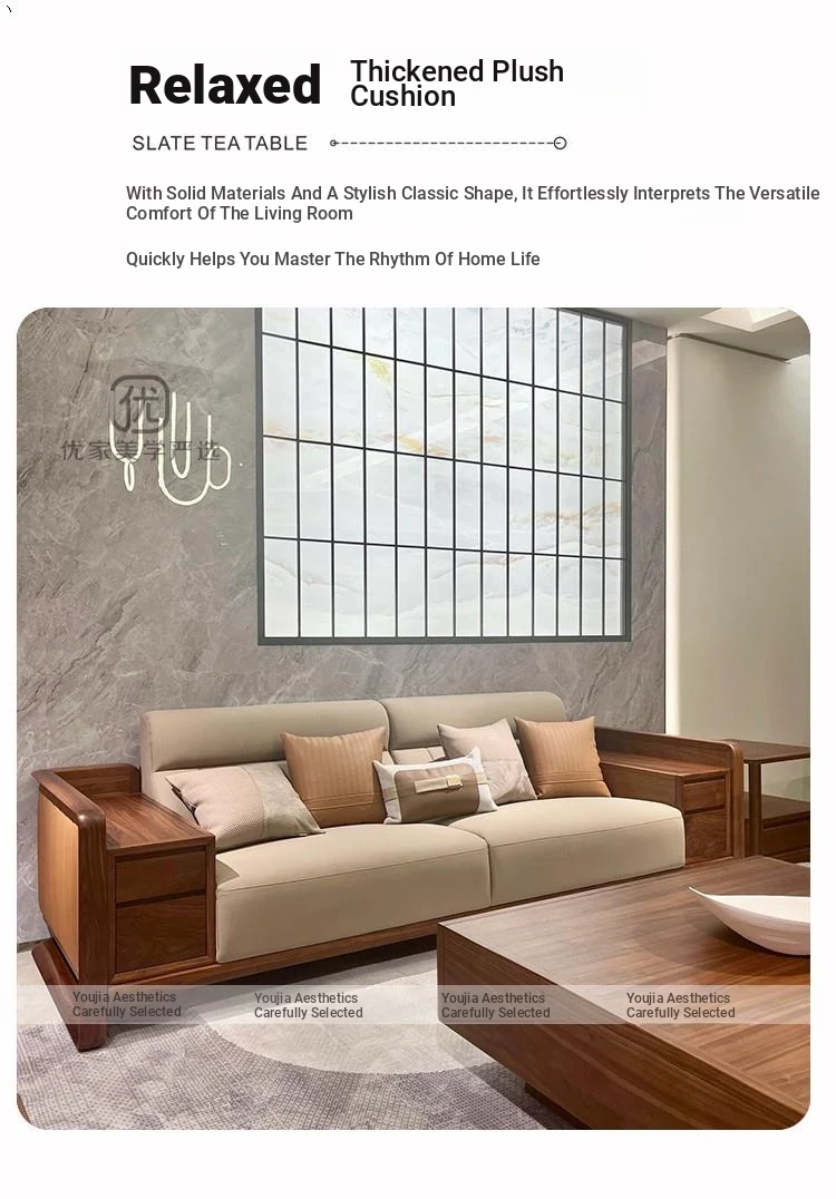 2025 New Chinese Style Solid Wood Sofa - Modern Minimalist High-End Villa Sofa in North American Black Walnut