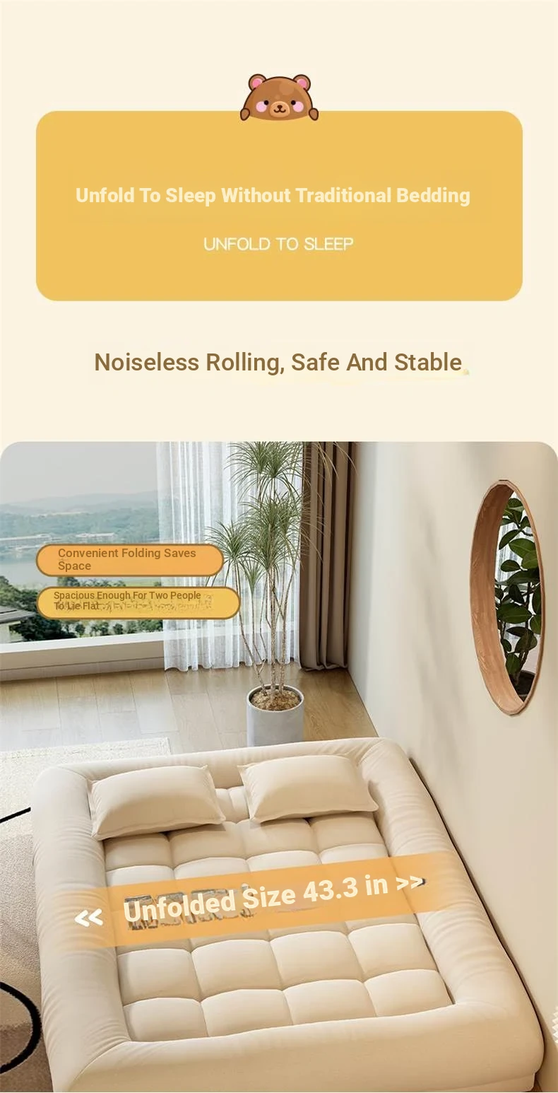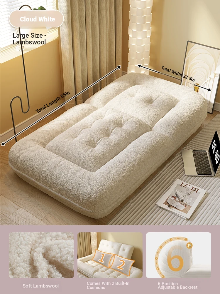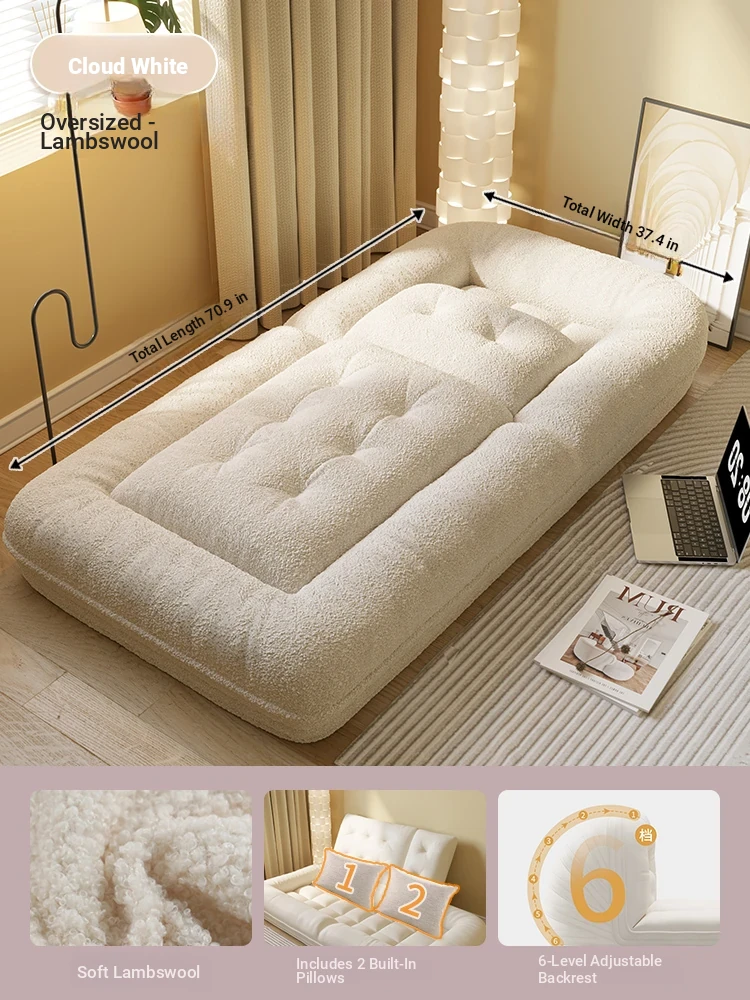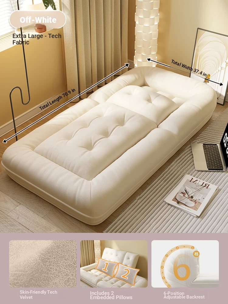 Flagship⭐[Unfold 70.87in_37.40in] Upgrade Technology Cloth Flannel-White (Give Backrest + Cushion)