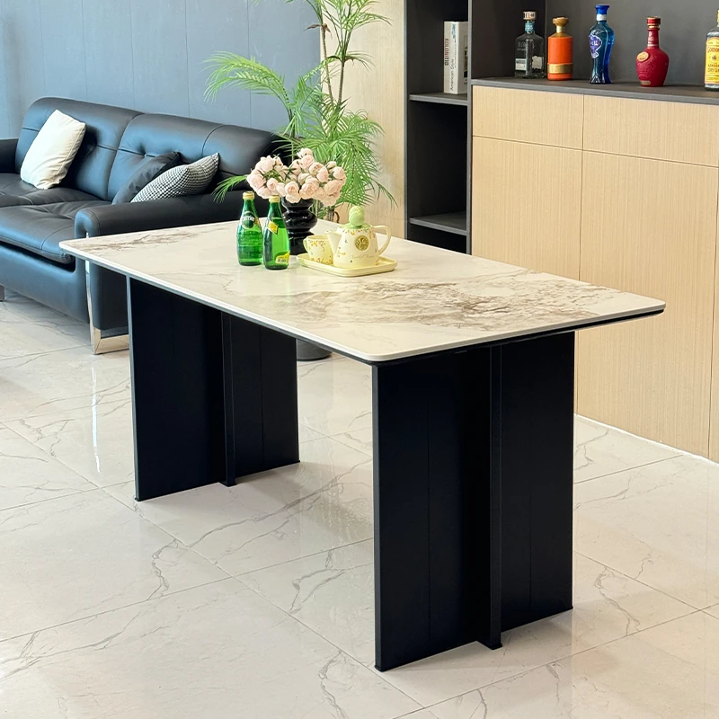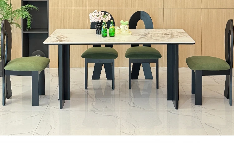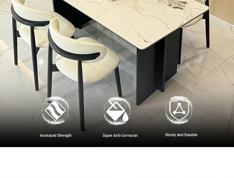 Delifeng Black Aluminum Alloy Latte Rock Dining Table Set - Modern Minimalist Design for Small Living Spaces, Perfect for Home Use