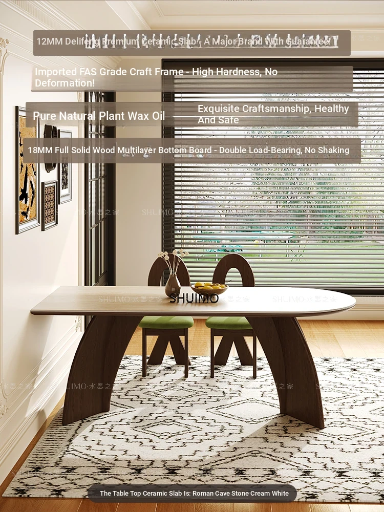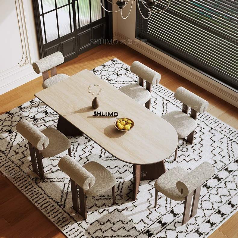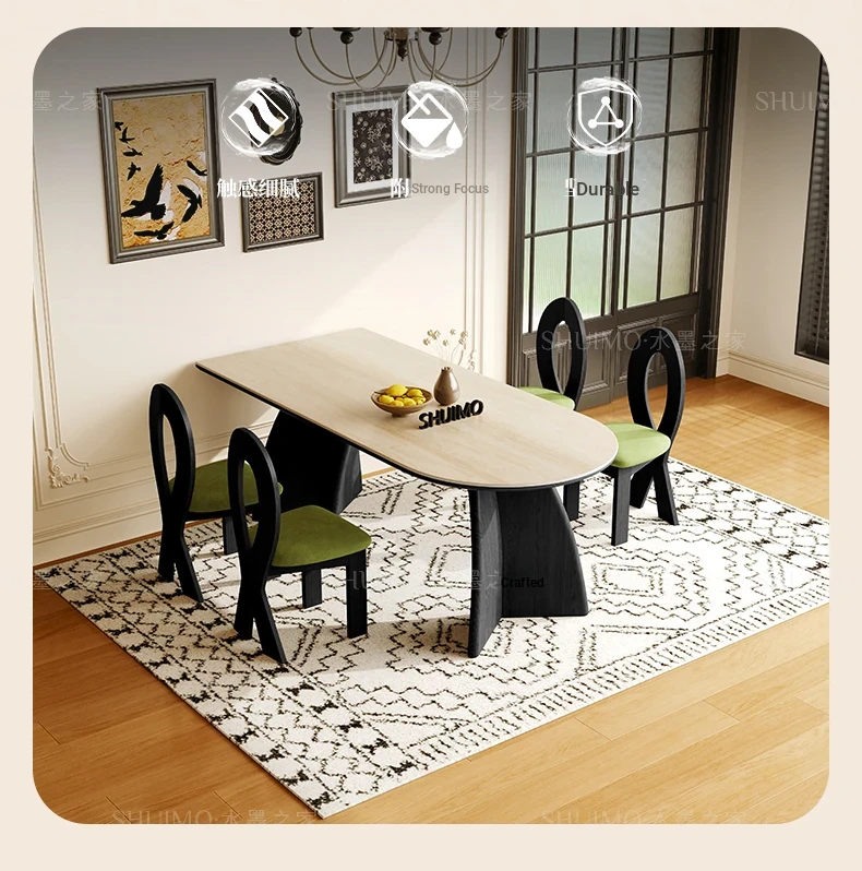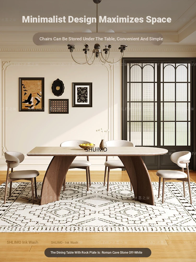 Delifeng Elegant Cream Oval Rectangle Dining Table – Stylish French Design for Small Spaces, Perfect for Your Living Room!