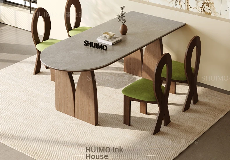 Delifeng Elegant Cream Oval Rectangular Dining Table for Small Spaces - French Style Natural Stone Finish, Perfect for Living Rooms and Luxurious Home Dining.