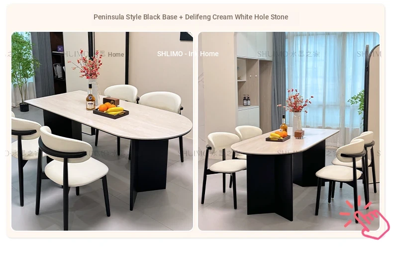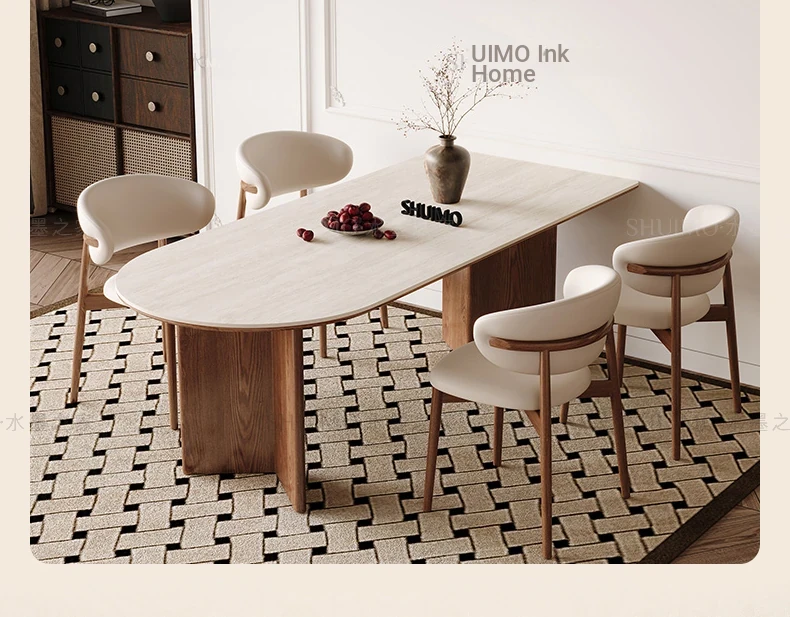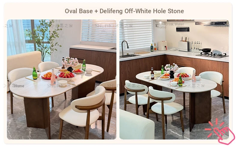 Delifeng Elegant Cream Oval Rectangular Dining Table - Stylish French Design for Small Spaces, Perfect for Cozy Living Rooms